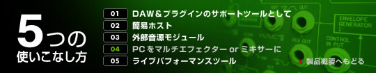 ハードディスクレコーダーなど、ハードウェア機器を中心に据えたシステムでも、豊富なソフトウェアエフェクターを利用したいことはたびたびあります。